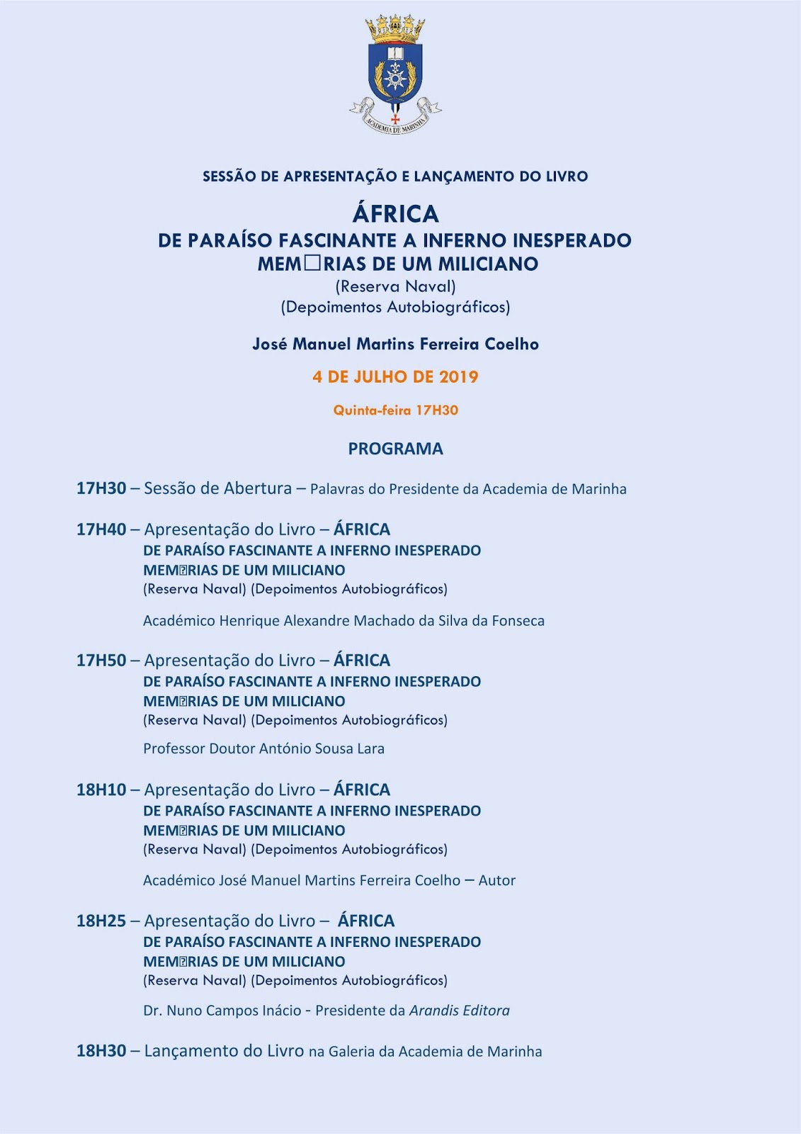 HAFonseca envolvido na apresentação em 04JUL2019 na Academia de Marinha dum livro autobiográfico do nosso conhecido Dr. Ferreira Coelho (Ex- oficial RN que participou nas celebrações do nosso Curso em Tavira e na homenagem ao nosso patrono Miguel Corte Real):